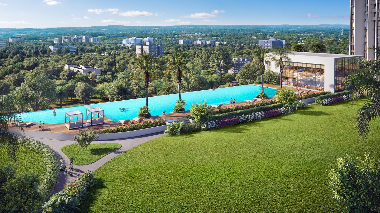 L&T Evara Heights is an aesthetically pleasing gated community with striking edifices behind Viviana Mall at Pokhran Road, Thane. The 2 BHK, 3 BHK and 4 BHK apartments with private sundecks offer fascinating views of the Yeoor Hills and Thane skyline. The elevations are designed with modern architecture and east-west orientation to ensure seamless ventilation and natural light. The smart layout of every apartment optimises space utilisation and privacy. These fully air-conditioned homes come with smart home automation, classic marble flooring, high-end fitments and palatial floor-to-ceiling height.